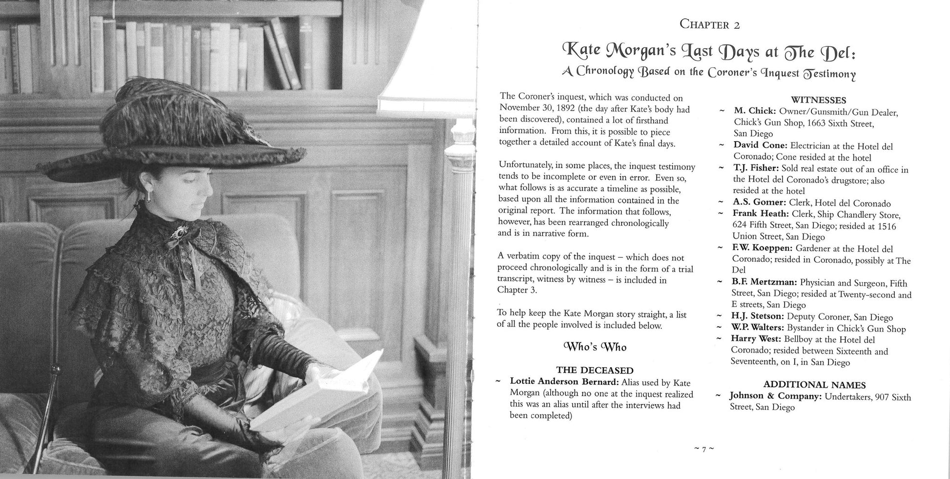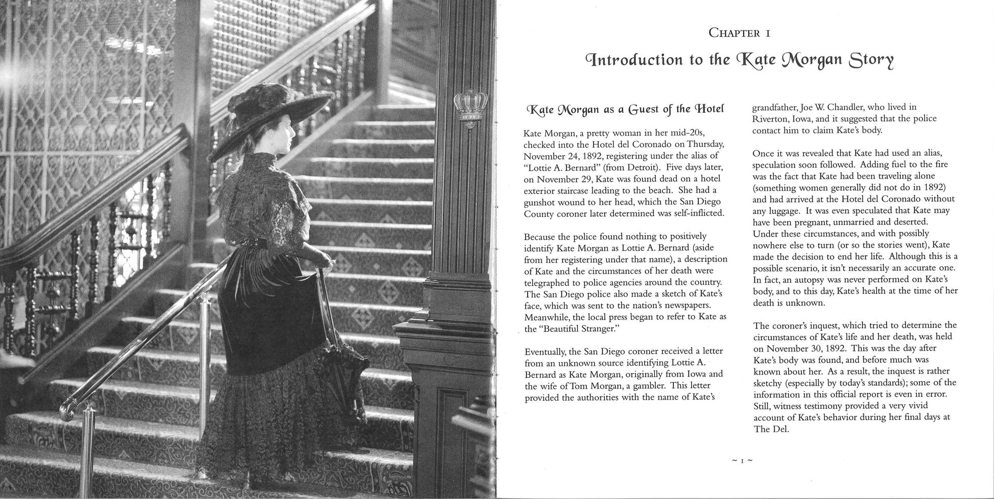 Kate Morgan's suicide at the Hotel del Coronado in November 1892 generated widespread publicity throughout the state. Because little was known about Kate's identity, the press began to refer to her as the "Beautiful Stranger". When it was later revealed that Kate had checked into the hotel under an assumed name, the public's interest only increased: Who was this "Beautiful Stranger"? Where had she come from? Why had she traveled to the Hotel del Coronado? And why had she killed herself? This book is the official story of Kate Morgan's 1892 visit and details of recent ghost sightings and other paranormal activity.